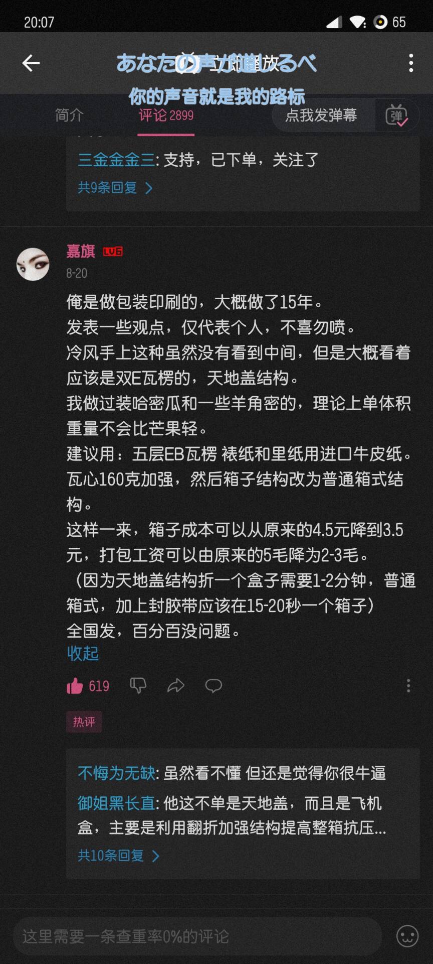 但是有一天在B站刷到了一个卖水果的UP(冷风)的视频,视频解释说:最近的售价上涨是因为想避免运输造成的损坏,升级了包装,导致成本变高。然后下面有个评论讲了应该如何包装,如何节省成本和人力,讲的事无巨细。