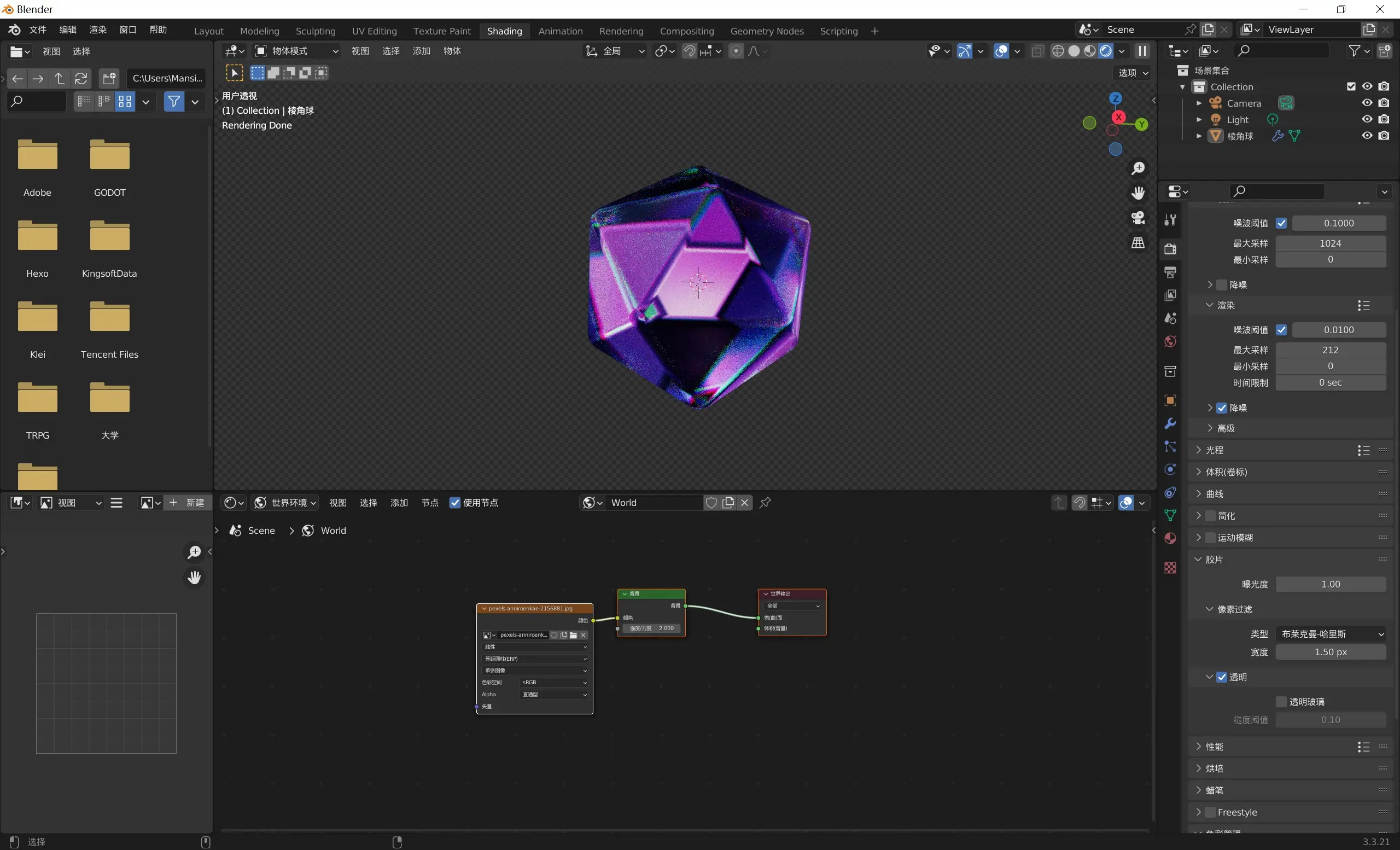 到目前为止,玻璃骰子的基础设置基本上就做完了,剩下的就是配置颜色,毕竟目前用的还是Blender自带环境,折射出来的样子不太好看。素材的话,就到PEXEL网站里找一个吧。